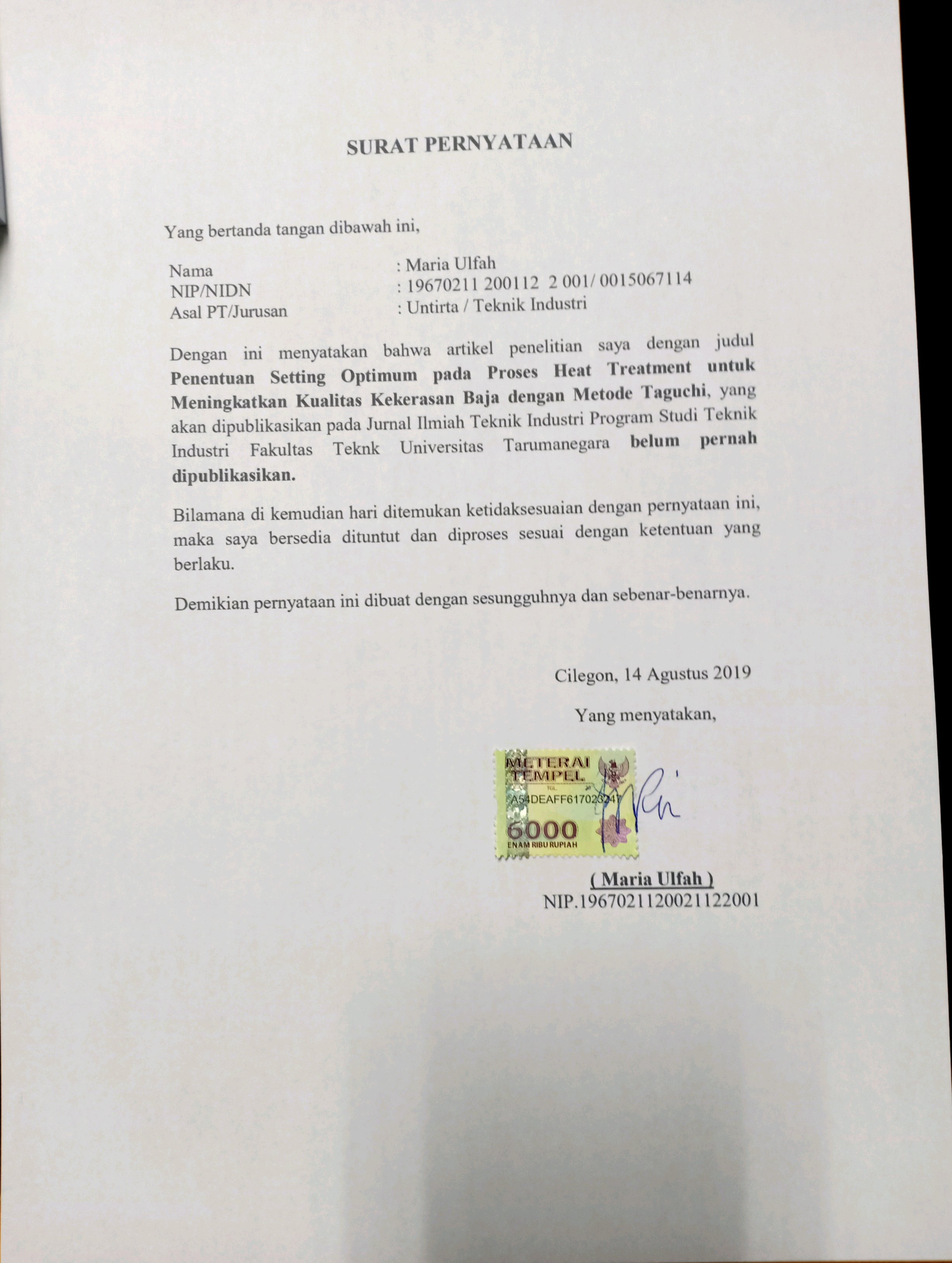 PENENTUAN SETTING OPTIMUM PADA PROSES HEAT TREATMENT UNTUK MENINGKATKAN KUALITAS KEKERASAN BAJA DENGAN METODE TAGUCHI