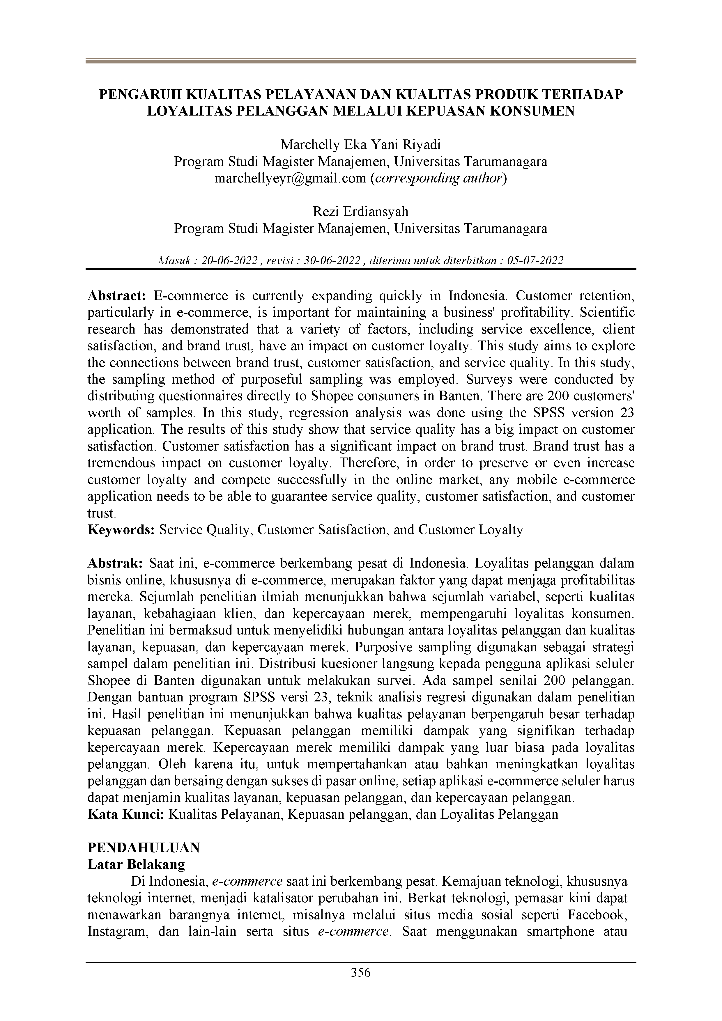 Prisanti, M. D., Suyadi, I., & Arifin, Z. (2017). Pengaruh E-Service Quality dan E-Trust terhadap E-Customer Satisfaction serta Implikasinya terhadap Ecustomer Loyalty. Journal of Business Studies, 2(1), 19–38.