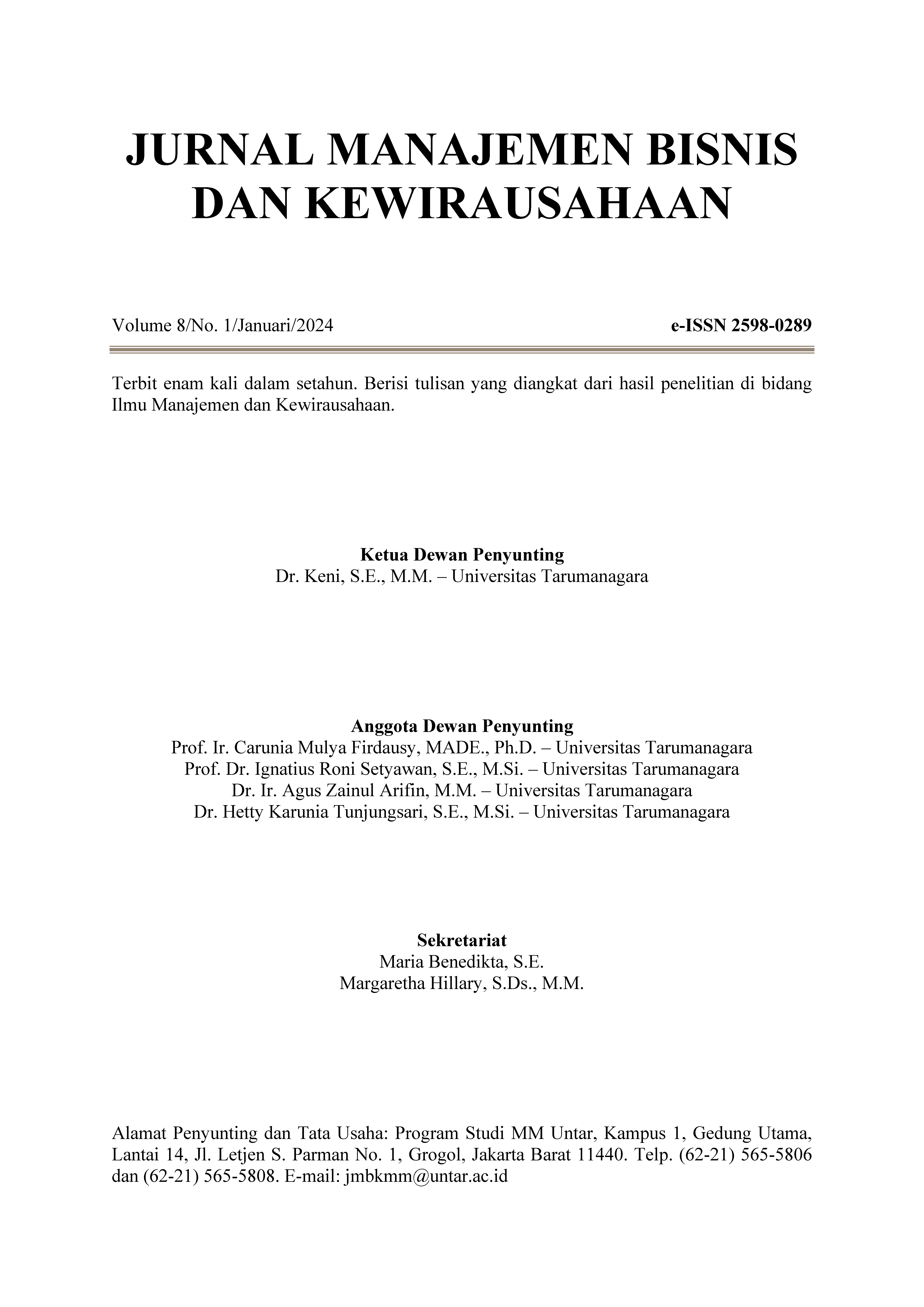 Jurnal Manajemen Bisnis dan Kewirausahaan Vol. 8 No. 1