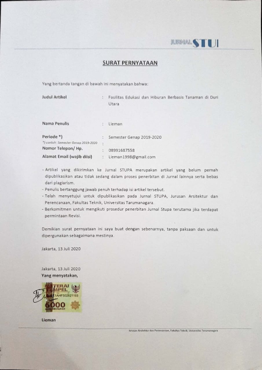 FASILITAS EDUKASI DAN HIBURAN BERBASIS TANAMAN DI DURI UTARA